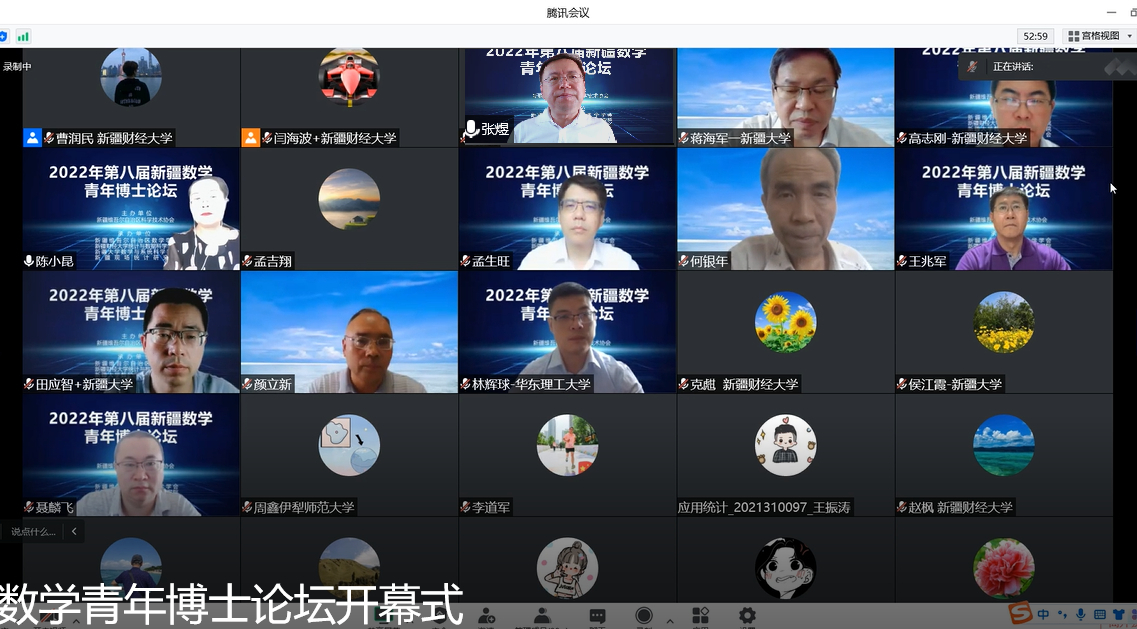 由自治区科协主办,新疆数学学会、新疆财经大学等承办的第八届新疆数学青年博士学术论坛在线研讨会举行。自治区科协党组成员、副主席张煜出席论坛开幕式并致辞。