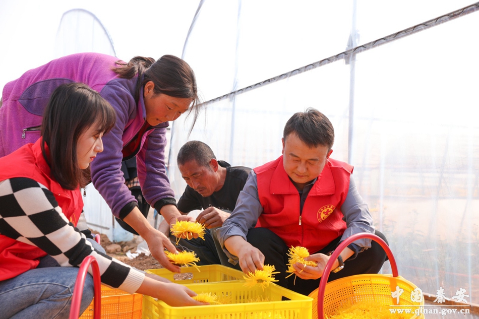 2022年,五营镇在广泛调研和征求党员群众意见的基础上,经过多方论证,因地制宜引进种植了观赏性强、经济价值高的金丝皇菊,在雒塬村租赁闲置的春暖棚,订单式种植金丝皇菊,进一步壮大村集体经济,带动农民增收。目前,33棚金丝皇菊已经进入采摘期。
