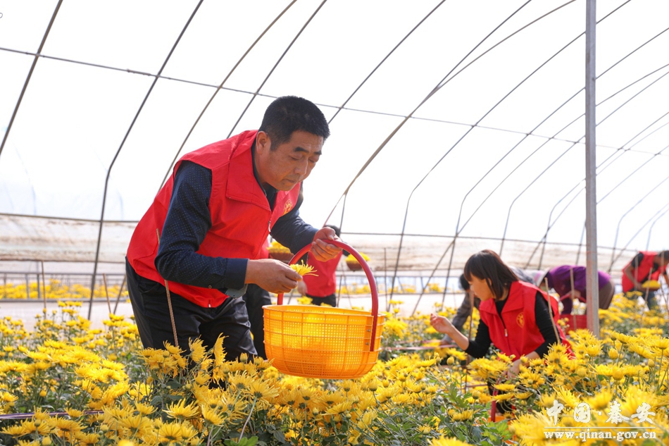 眼下,秋意正浓,在秦安县五营镇张塬村的金丝皇菊种植基地里,金灿灿的菊花竞相绽放,一朵朵形如绣球、色如黄金的花瓣一层赶着一层,微风拂过,阵阵清香扑鼻而来,沁人心脾,不仅为广阔的田野增加了一抹靓丽的风景,也为当地农民带来了可观收入。