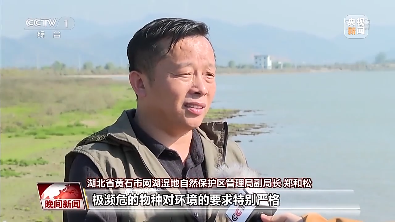 湖北省黄石市网湖湿地自然保护区管理局副局长 郑和松:极濒危的物种对环境的要求特别严格,要求我们有一个丰富的食源,有一个非常适宜的生存环境。那么它的到来就说明我们的环境有一个非常好的非常明显的改善。