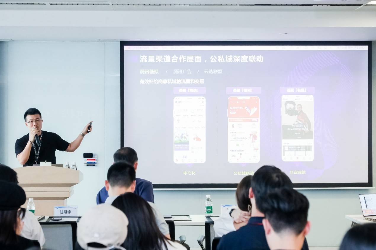腾讯智慧零售购物中心行业负责人毛安然为参会企业更全面地介绍了腾讯智慧零售业务的主要职能及可提供的服务与协助。毛安然表示,腾讯智慧零售从公域到私域全面建设,通过多触点流量加持,不同流量渠道引入,帮助企业在社交零售赛道实现公私域联动,为企业的商业增长助力。并为企业提炼驱动增长的关键能力,持续支持企业长期高质量发展。