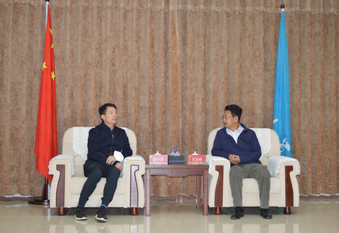 市委常委、组织部部长徐小兵(左)与吉林大学党委常委、副校长王玉柱(右)座谈