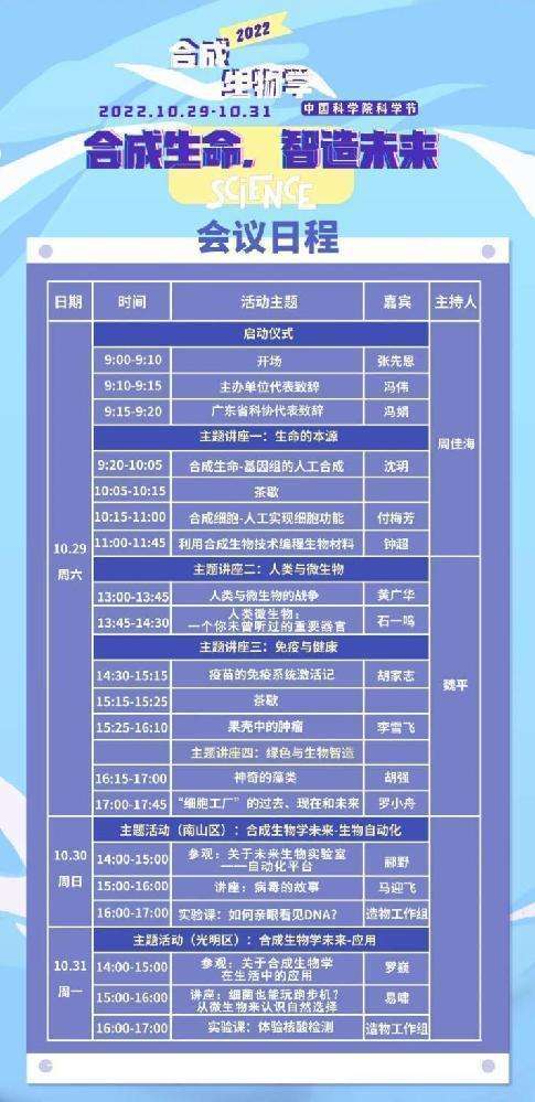 由于疫情原因,广大市民和师生可参加线上互动了解合成生物学知识,还有机会获得会后线下参观合成生物实验室的名额。