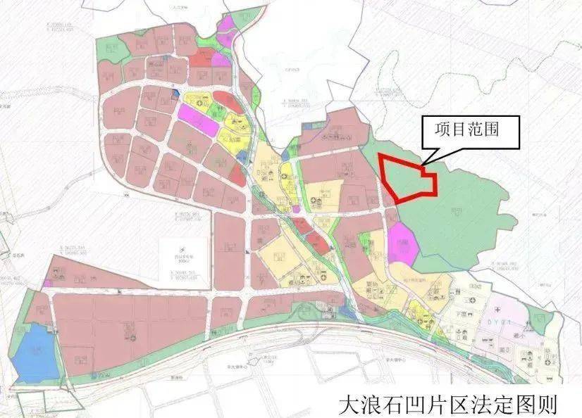 本项目用地位于深圳市龙华BA401-22号片区[大浪石凹片区]法定图则中07-01地块内,规划调整后,本项目用地07-01-03地块用地功能为科研用地+教育设施用地(GIC0+GIC5),总用地面积约9.1万平方米。