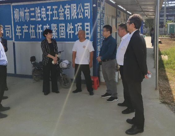 图1莫玉和副主席一行实地调研柳州市三胜电子五金有限公司项目进度