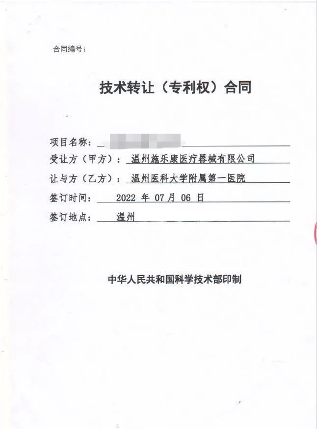 经过迈科技温州团队近半年的撮合与对接,温州施乐康医疗器械有限公司与温州医科大学附属第一医院技术团队通过“浙江知识产权交易中心”平台,以“挂牌交易”的定价方式达成交易,双方成功签订技术转让(专利权)合同。目前产品开发正在稳步进行,即将进入市场化阶段。
