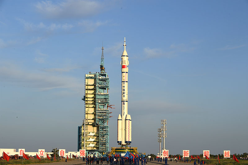 2021年6月9日,神舟十二号载人飞船与长征二号F遥十二运载火箭组合体转运至发射区。汪江波/新华社