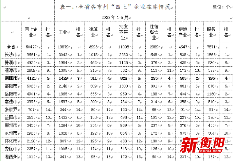 前三季度,衡阳市在库"四上"企业同比增9.78%,从各县市区(园)看,大部分保持增长。七县市中常宁市、衡南县、衡山县、耒阳市、衡东县增速排名靠前;五城区两园区中高新区、松木区、珠晖区增速排名靠前。