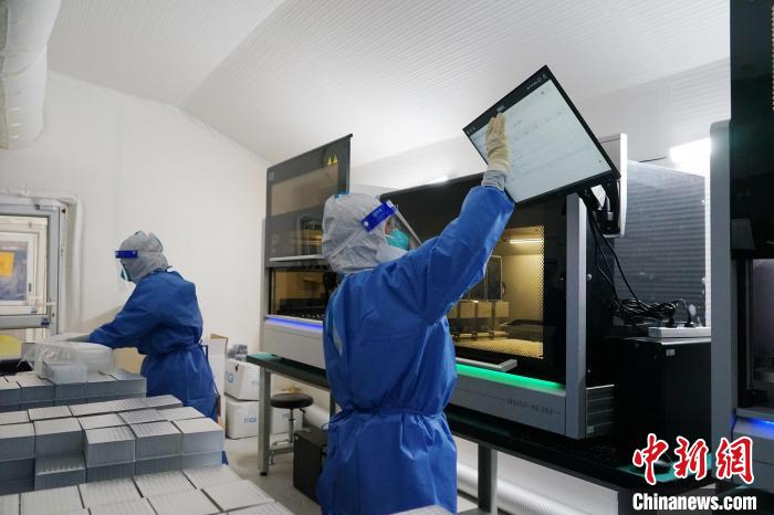 据悉,该实验室配有PCR扩增仪及全自动核酸提取仪、全自动点样仪等设备,在24小时不间断检测中,采集的大批量样本在4至6小时内得出检测结果,每日最高可完成单管10万管核酸样本的检测,有效缓解核酸检测压力。