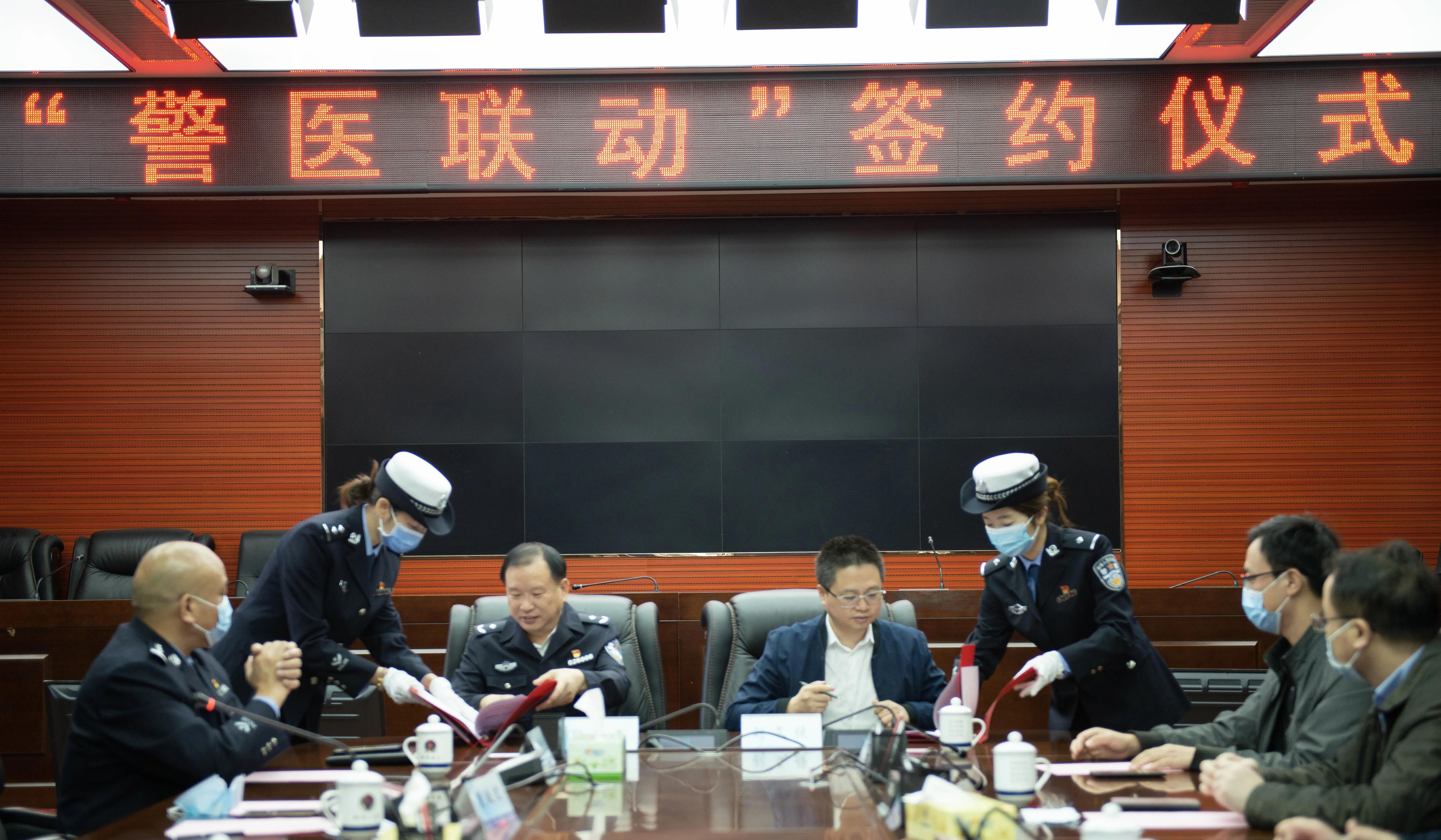 南华附二医院院长刘文捷、市公安局交警支队支队长段政文分别代表医院和交警支队签订警医共建协议书。