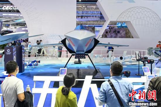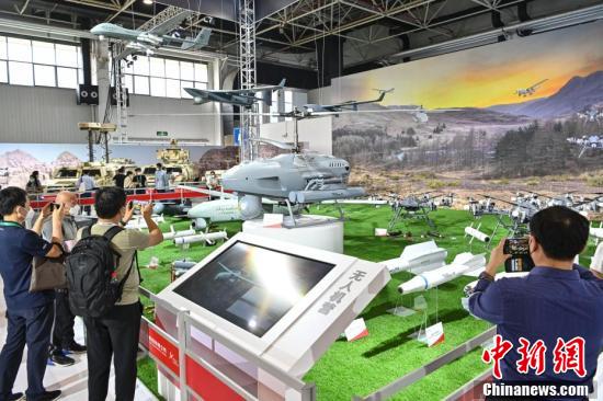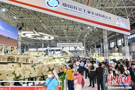 11月9日,广东省珠海市,中国兵器工业集团有限公司在第十四届中国航展上推出的陆军合成旅实战体系展示吸引民众。陆军合成旅解决方案涵盖作战支援营、侦察营、坦克营、机步营、炮兵营、反坦克营、防空营、无人机营等。(中新社记者 陈骥旻 摄)