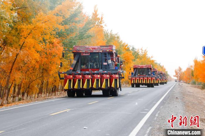 新疆阿拉尔市首批19台大型采棉机驰援库车助棉花采收