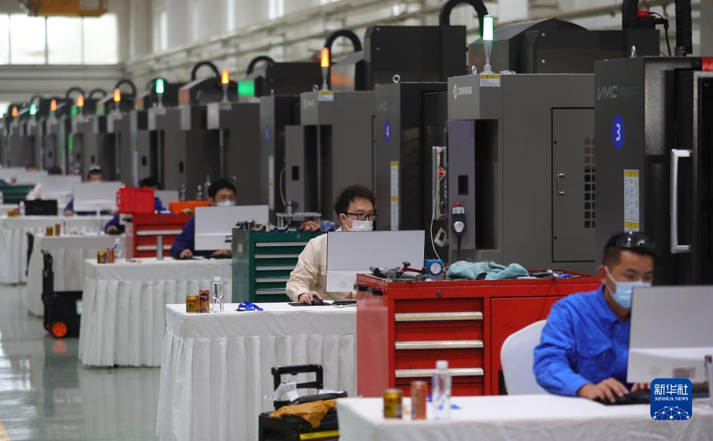 11月10日,参赛选手在数控多轴加工比赛中比拼。新华社记者 杨青 摄