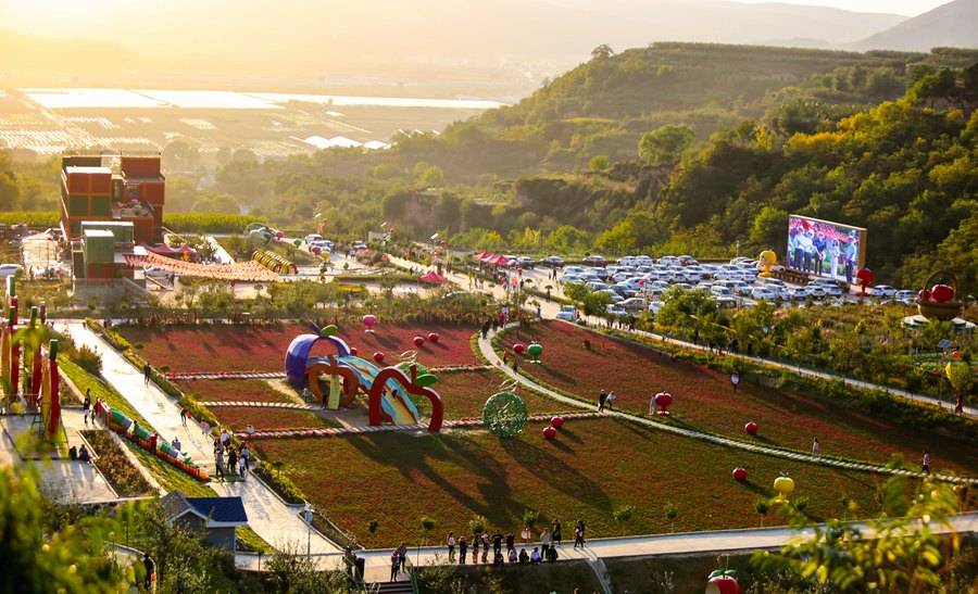 甘肃省静宁县城川镇苹果谷景区绿树环绕,风景美如画卷。 人民网甘肃频道 侯崇慧 摄