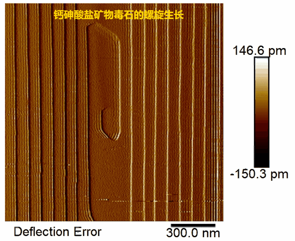 原子力显微镜在研究溶液-矿物界面过程中有着不可取代的作用,能够直观的研究矿物表面发生的微观(水平分辨率达到亚纳米级别,垂直分辨率率达到埃级)过程,更能从本质上解释相关过程的控制机理。