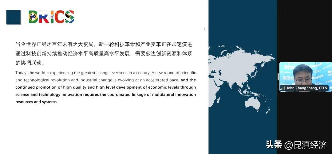 中国国际科技交流中心贾子文副主任在致辞中表示,中国科协将增进对国际科技界的开放信任合作,在国际科技组织建设上实现新突破。”云南省昆明市是中国科协“科创中国”第二批试点城市,也是“金砖国家新工业革命伙伴关系”中方成员,正在推进金砖及“金砖+”合作走深走实、依托金砖国家机制加快建设区域性国际科技创新中心、落实金砖国家新工业革命伙伴关系等方面持续开展工作。