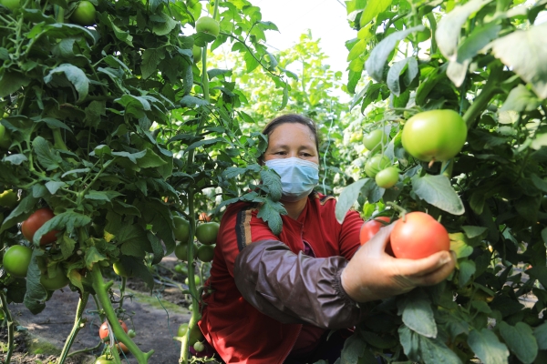 喜看大棚排沃野,菜乡处处尽朝晖。11月15日,走进博湖县本布图镇设施农业产业园,一排排智能温室蔬菜大棚呈现眼前,棚上挂着厚厚的卷帘,步入大棚内,只见一派繁忙景象,西红柿、辣椒等蔬菜绿意盎然,工人正忙着采摘装箱。