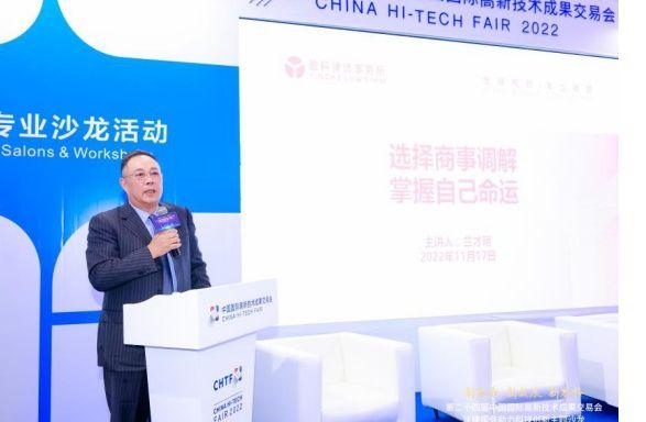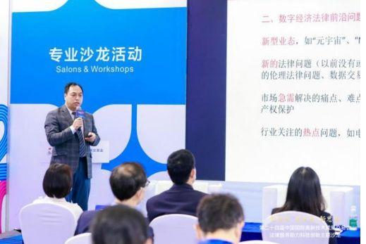 2022年11月17日下午,第二十四届中国国际高新技术成果交易会“法律服务助力科技创新”主题沙龙在深圳市会展中心(福田)4号展厅举行。本次沙龙活动由福田区司法局、福田区法学会主办,深圳市人民检察院、深圳市司法局支持,河套国际商事调解中心、福田区律师工作委员会、深圳市北鹏前沿科技法律研究院协办。福田区司法局党组书记王显军、福田区法学会副会长丘娴芝在活动中致辞。