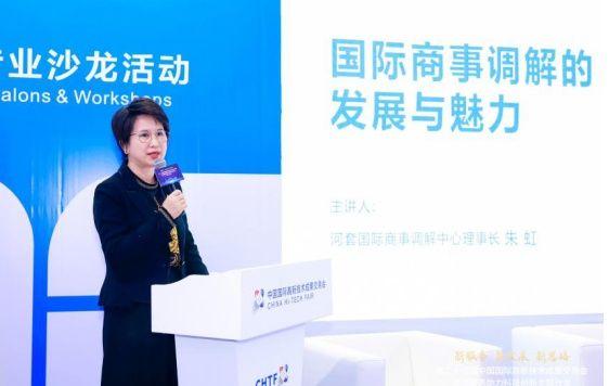 河套国际商事调解中心朱虹理事长介绍了商事调解的起源、发展和前景,阐述商事调解的优势。基于实务经验,提供不同情况下商事争议的高效解决方案和建议。