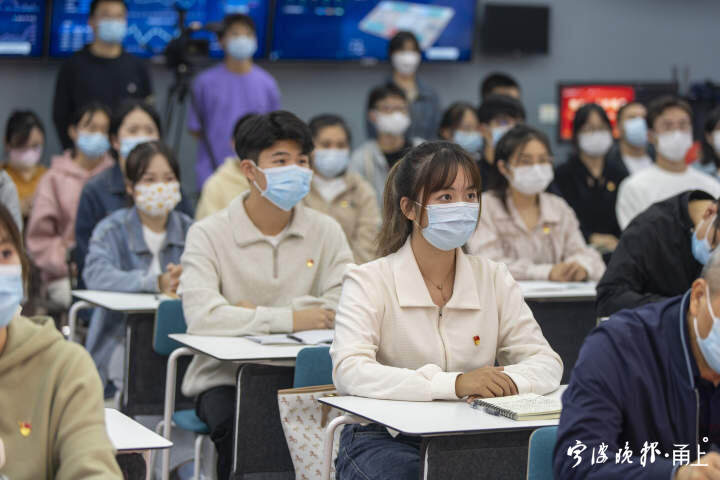 淅沥秋雨,挡不住青春热情。10月16日晚,位于宁波鄞州高教园区的浙江万里学院内,一堂“云端思政课”气氛热烈。党的二十大代表、宁波市北仑区大碶街道灵峰社区党委书记史孟艳,在千里之外的北京连线浙江青年学生,分享心得感悟,与大家一起学习报告精神。