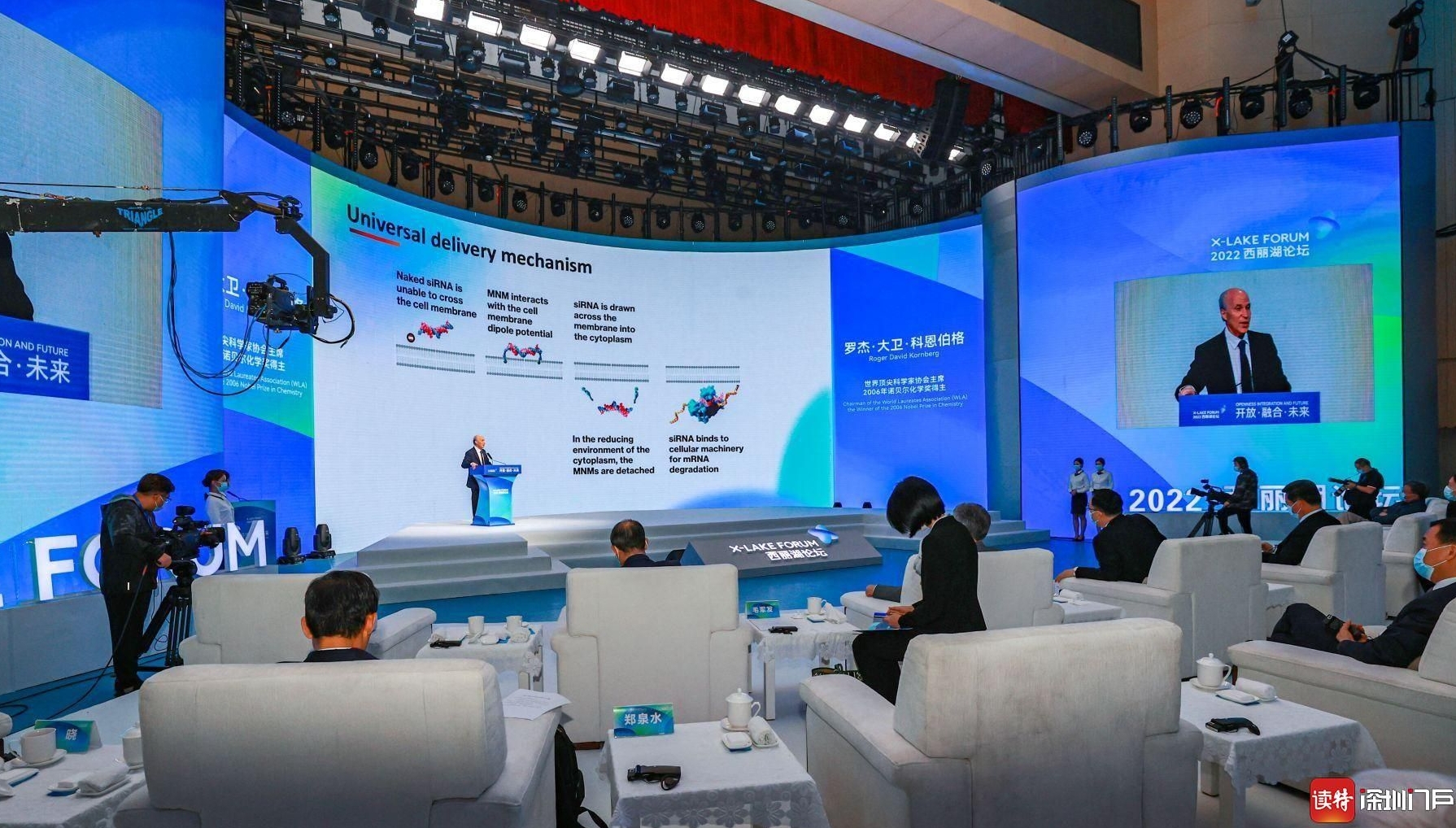 本次论坛邀请诺贝尔化学奖得主罗杰·大卫·科恩伯格,菲尔兹奖得主埃菲·杰曼诺夫,鹏城实验室主任、中国工程院院士高文,深圳大学校长、中国科学院院士毛军发,粤港澳大湾区数字经济研究院理事长沈向洋等多个领域的领军人物代表汇聚一堂,围绕科技、教育、产业、金融 “四融合” 领域进行主旨演讲。