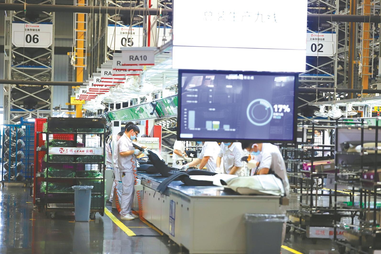 走进位于武汉市江夏区的武汉汇众汽车底盘系统有限公司装配车间,只见生产线两侧一排排机械臂正在灵巧地作业。经过不同工序的装配,零部件被组装成不同车型的汽车底盘模块。