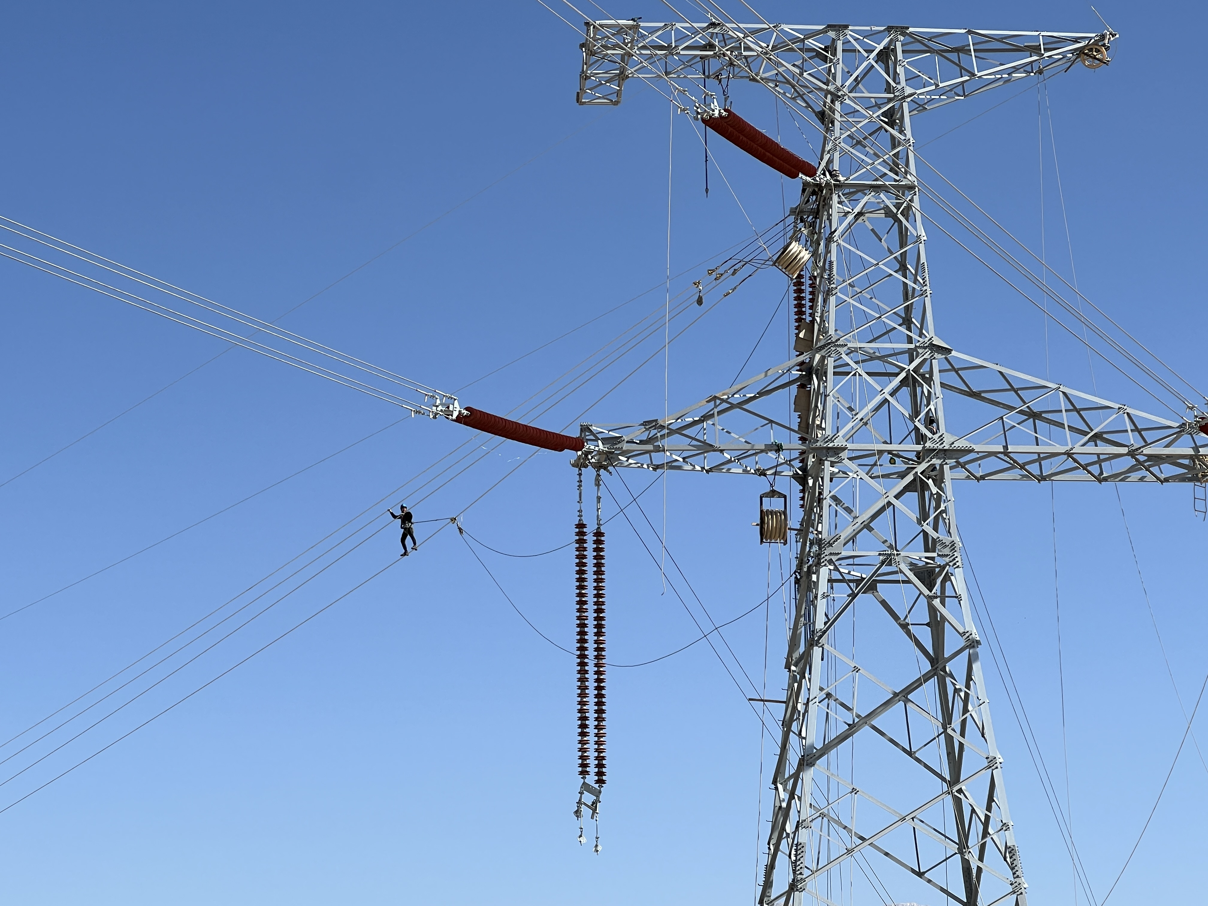 同时,依托“一基一码”管理、“点滴养护法”及声测技术等数字化手段,为工程建设提供可靠支撑。“全线机械成孔,索道运输,平摇臂抱杆,吊车组立塔,通过施工点检卡、智能可视化导线架设监测手段,保证了现场安全文明施工标准化。”何恩家介绍,特别是该工程中首创索道过桥施工技术,最大程度降低了对环境的影响,也保证了工程总体进度。