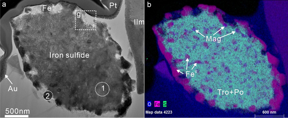 研究表明,月球表面硫化物在撞击过程中会发生复杂的气液反应,使得溶解进入硫化物的零价铁通过共析反应,生成亚微米级的磁铁矿以及单质金属铁。
