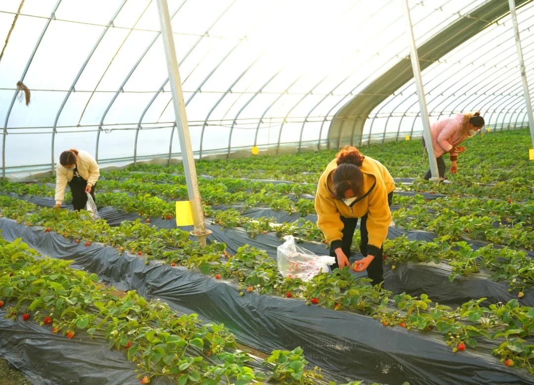 在草莓大棚里记者看到,鲜红的草莓点缀在绿叶间,色泽诱人,空气中弥散着淡淡的果香。居民提着篮子,弯腰采摘草莓,尽情地品尝着香甜的草莓,体验着休闲采摘的乐趣。