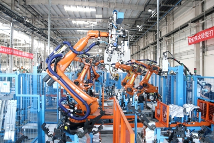 工业机器人怎么合作完成汽车零部件的智能制造?走进海斯坦普汽车组件(北京)有限公司(简称海斯坦普北京),在其生产高端轻量化车身及车身装焊总成智能工厂里,机器轰鸣声伴随着焊接火花时有闪耀,产线上各种类型的橘色机械臂正有条不紊地工作,自动上料,自动化板材连接,在线检测……每2分钟就有一个成品下线。