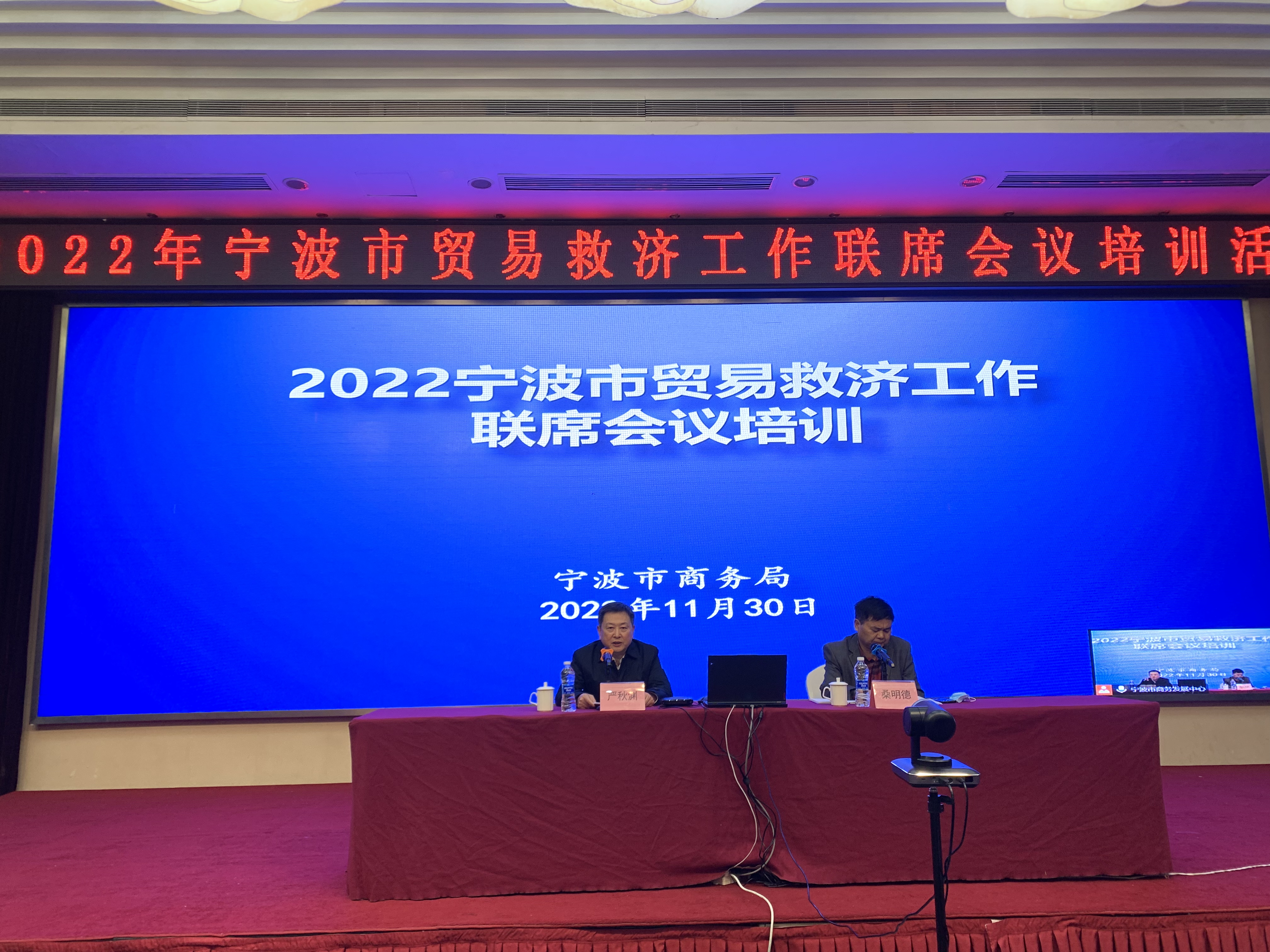 为加强贸易救济工作,健全协调机制,增强规则意识,11月30日,宁波市商务局在嘉和大酒店采用线上线下并举方式举办2022年宁波市贸易救济工作联席会议培训活动。市商务局党组成员、二级巡视员严秋渊出席并讲话,公平贸易处处长桑明德主持会议。市商务局主管部门、对外贸易预警点负责人、外经贸企业负责人等线上线下共100余人参加活动。宁波文具行业协会预警点俞勇锋、陈启德参加。