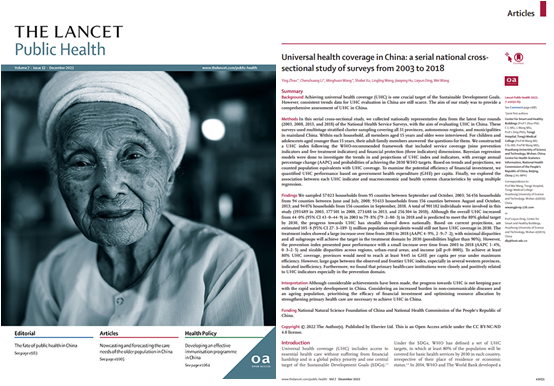 最新研究首次系统性评估中国全民健康覆盖情况