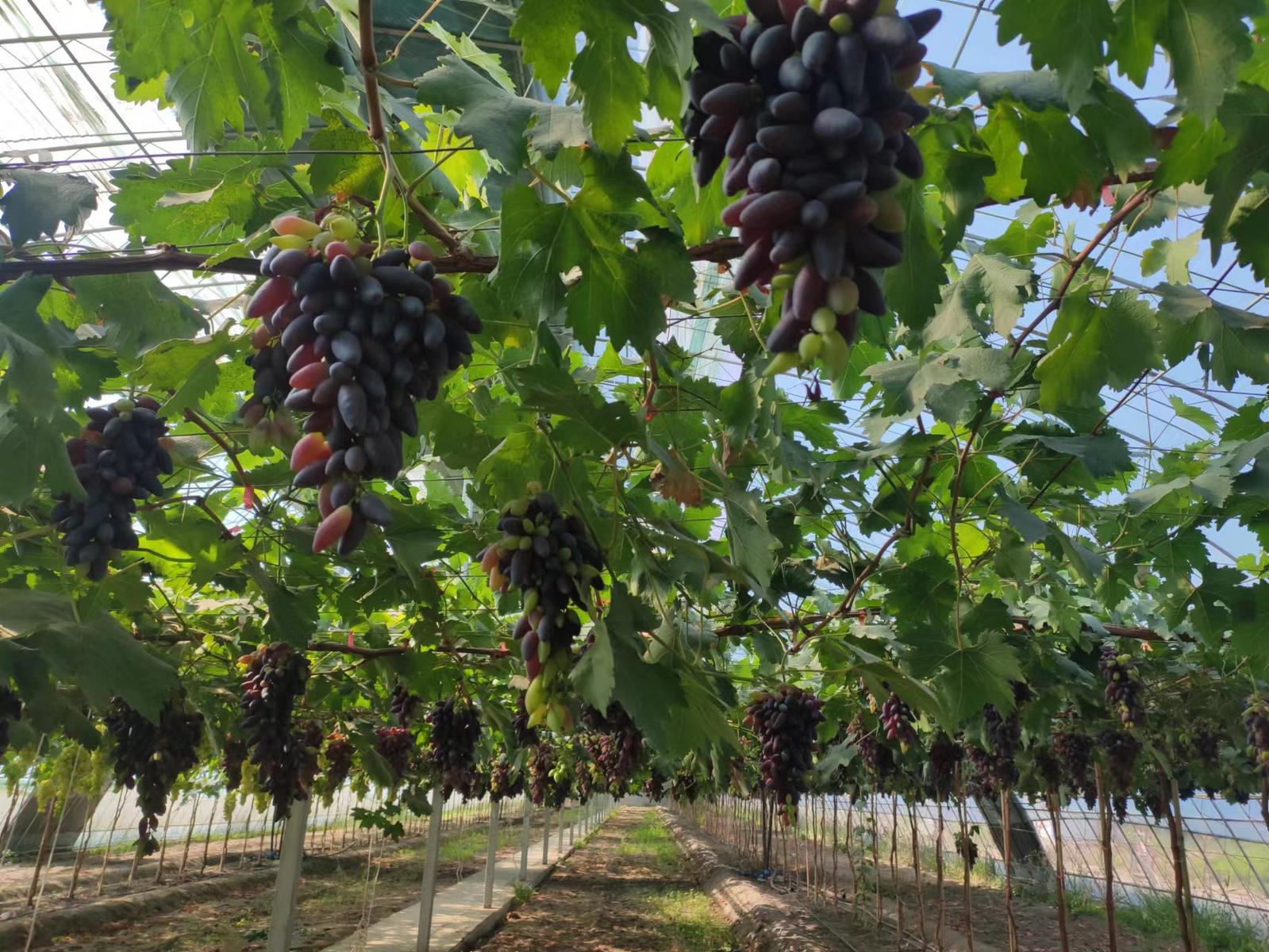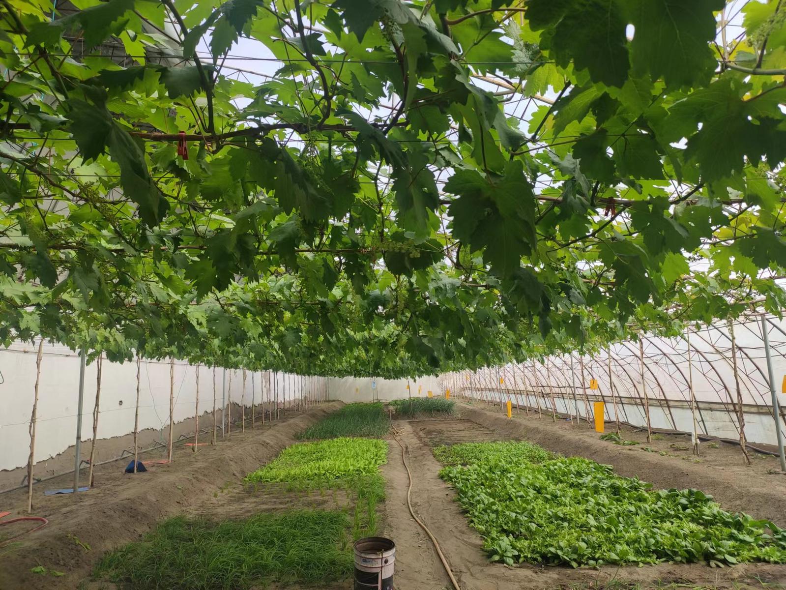 盐碱地上只能种葡萄吗?“当然不是,土地改良后,可以种植很多蔬菜水果。”鄂海霞告诉记者,她们在温棚中探索“立体”种植模式,种植玉波二号、蜜光、葡之梦、黄金蜜等优新葡萄品种。在葡萄种植的第一年,温棚内的其他空地可种植草莓、番茄等作物。第二年葡萄水平架行成形后,可在水平架下种植芹菜、菠菜、葱、白菜、香菜、茼蒿、生菜等低矮的绿叶蔬菜,每年可以种植2—3茬,有效利用空间,提高收益,快速推动了生态设施特色林果业发展。