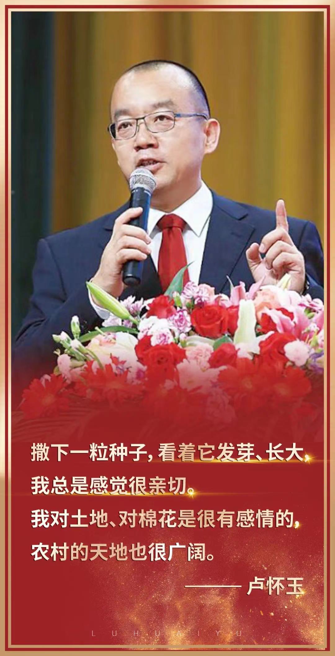 在业内,卢怀玉有“棉农代言人”之称。1990年,他考上中国农业大学,毕业后放弃出国留学深造的机会选择回乡发展,先后4次赴北京、河南等地考察转基因抗虫棉,引进3个优质品种。在海南三亚,他睡石屋、搭野灶,一年后收获到足够种植2000亩地的优质抗虫棉种。随后,卢怀玉带领科研团队创新培育出30个具有自主知识产权的棉种,特别是在抗虫棉大面积推广方面发挥了开路先锋作用。目前,卢怀玉团队繁育的棉种在全国每年推广种植300多万亩,助力数十万名棉花种植户致富。