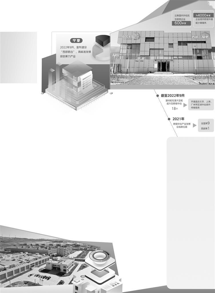 今年9月份,宁夏宣布建设“西部数谷”,高标准发展绿色算力产业。得益于今年2月份国家全面启动“东数西算”,京津冀、长三角、贵州、内蒙古、甘肃、宁夏等8地启动建设国家算力枢纽节点,并规划了10个国家数据中心集群。借助“东数西算”这一国家重大战略工程,西部的算力资源将更加充分地支撑东部数据的运算,开启我国数字化发展新局面。宁夏如何从其中脱颖而出?记者在宁夏进行了深入采访。
