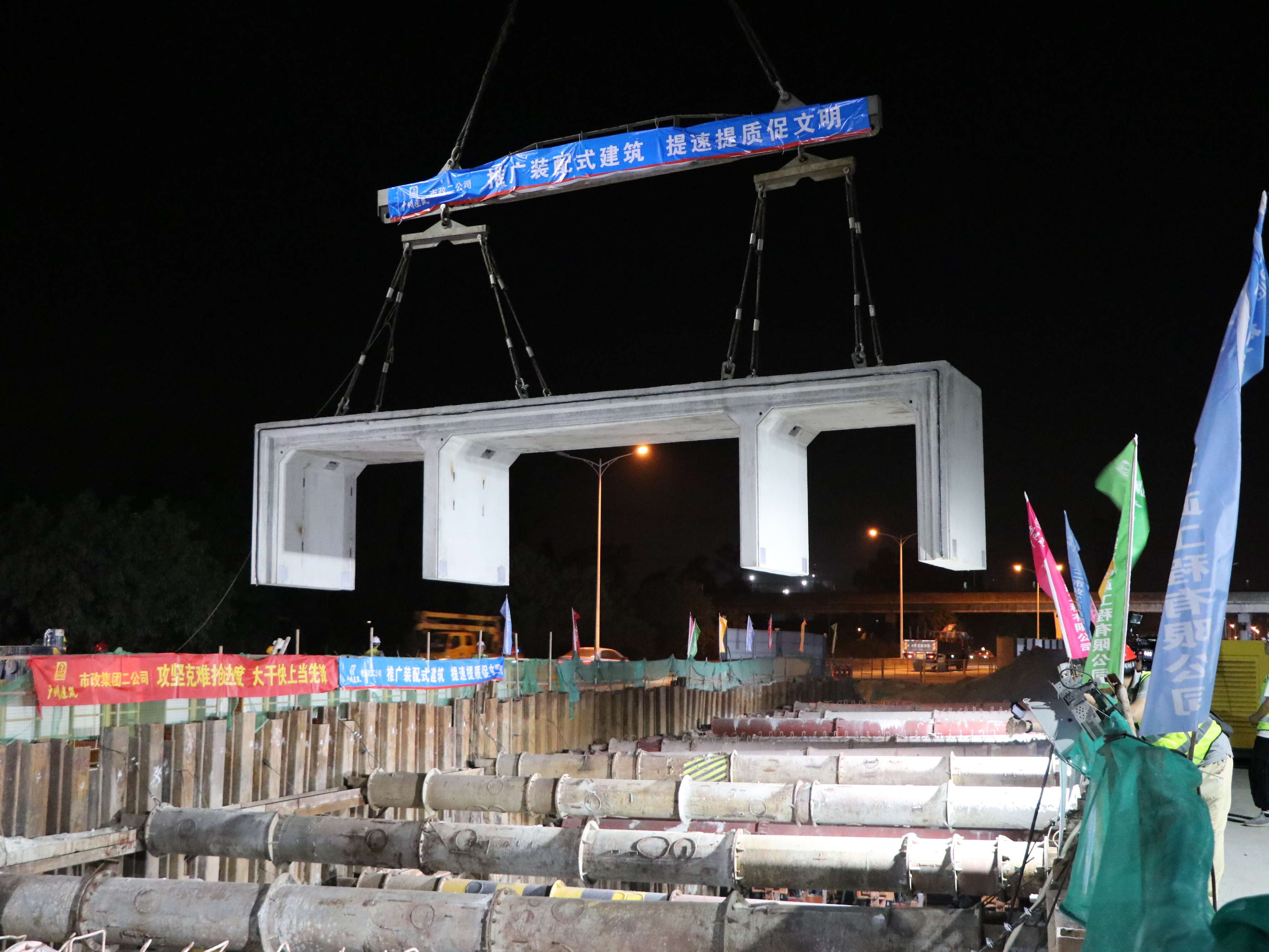 广花三标综合管廊项目的吊装施工。广州建筑属下广州市市政集团有限公司供图