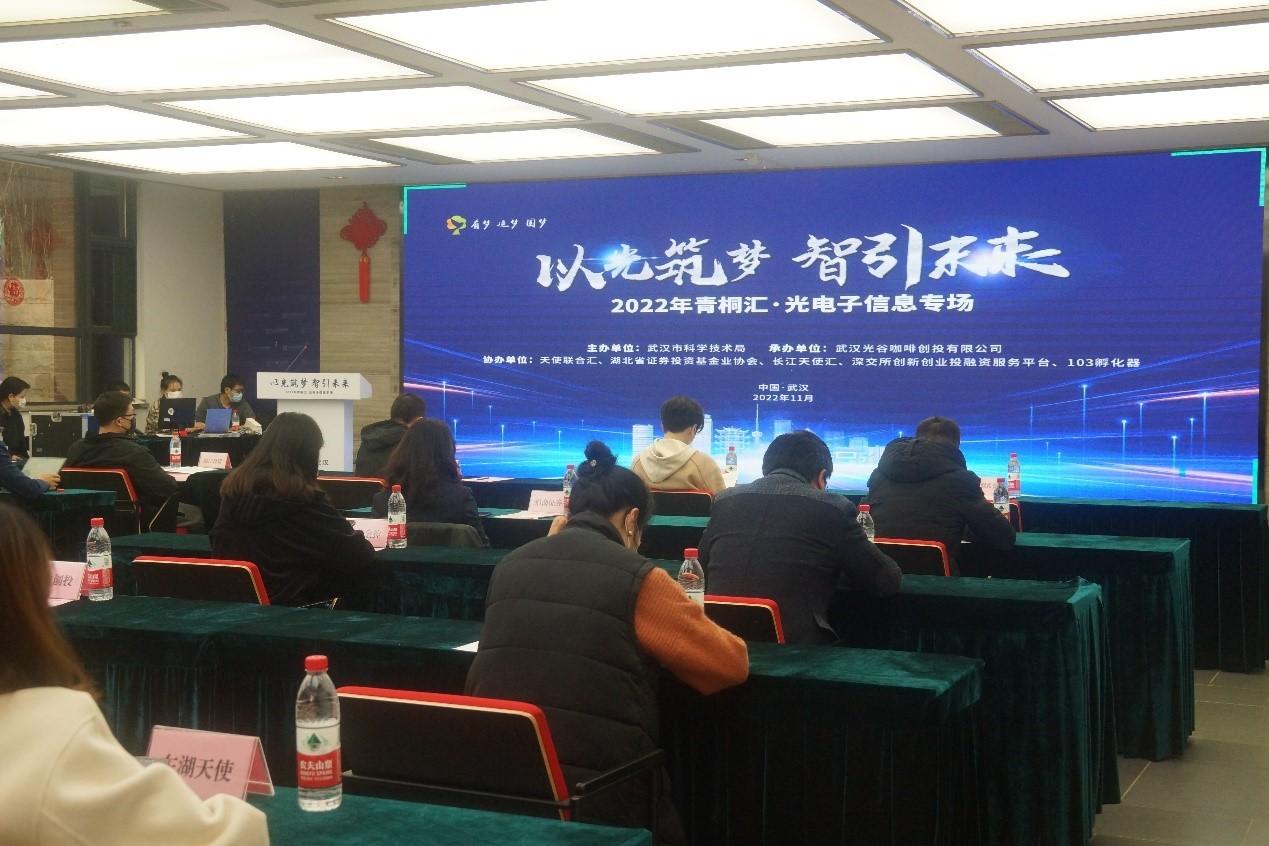 “以光筑梦 智引未来”。11月25日,2022年青桐汇·光电子信息专场在光谷创业咖啡总部基地顺利举办。武汉8个优质高校项目与30多家全国风投机构,通过线上线下进行了交流互动。