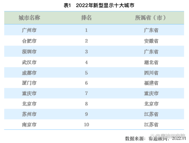 近日,工信部中国电子信息产业发展研究院旗下赛迪顾问发布《2022新型显示十大城市及竞争力研究》。