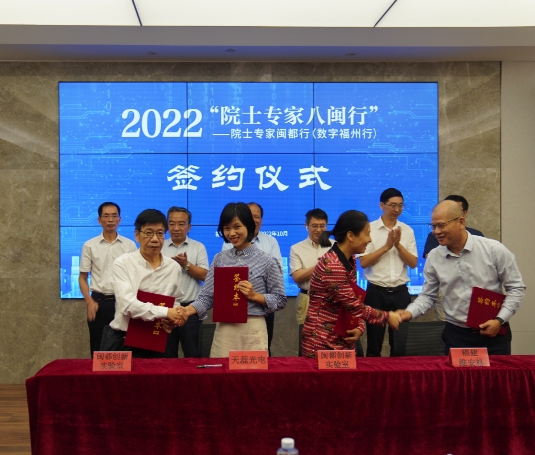在活动现场,闽都创新实验室分别与福建中科芯源光电科技有限公司、量子云码(福建)科技有限公司、福建维安格科技有限公司、福建天蕊光电有限公签订战略合作框架协议。