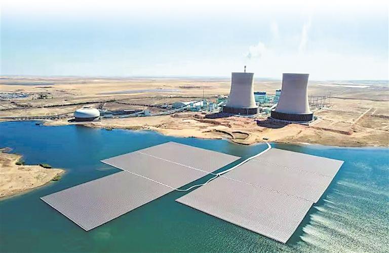 这是我区首个水上漂浮光伏电站——国家能源集团宁夏电力公司宁东电厂3×5.98兆瓦漂浮分布式光伏电站。该漂浮电站的建设,为在更多矿井疏干水域建设光伏电站、盘活闲置区域起到实验示范作用。宁夏日报记者 党硕 摄