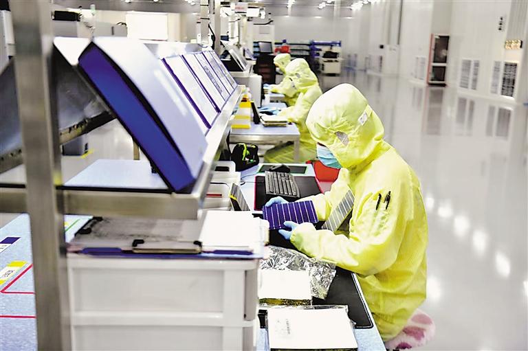 11月11日,工人在隆基乐叶10GW单晶电池一期项目生产线上忙碌。今年1月至10月,银川经开区预计实现工业总产值同比增长40%以上。宁夏日报记者 王鼎 摄