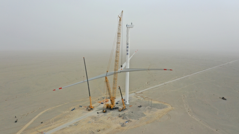 12月9日,新疆立新能源若羌县50兆瓦风电项目风机全部吊装完成,标志着整个风电场项目的8台风机全部吊装完成,即将全面进入调试并网发电阶段。