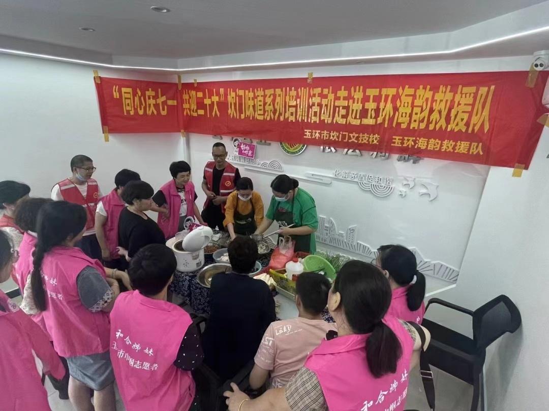 “坎门是浙东南地区的重要渔区,这里也衍生出了多姿多彩的海洋文化。”玉环市坎门成人文化技术学校校长郑峰说,学校在推出“东沙渔村‘海之韵’文化大讲堂”的终身学习品牌之后,利用自身教学资源并借助社区学校“初心夜校”平台,于2019年 又推出了坎门渔村渔民文化终身教育学习品牌——“三色文化教育”。