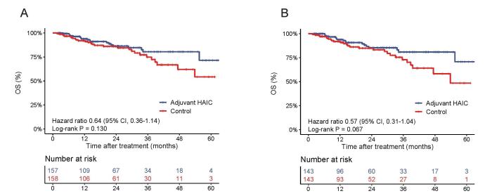 研究结果显示,在意向治疗人群中,肝动脉灌注化疗组和对照组的中位无瘤生存时间分别为20.3个月和10.0个月;在符合方案人群中的中位无瘤生存时间分别为19.3个月和8.9个月,均达到了研究的主要终点。