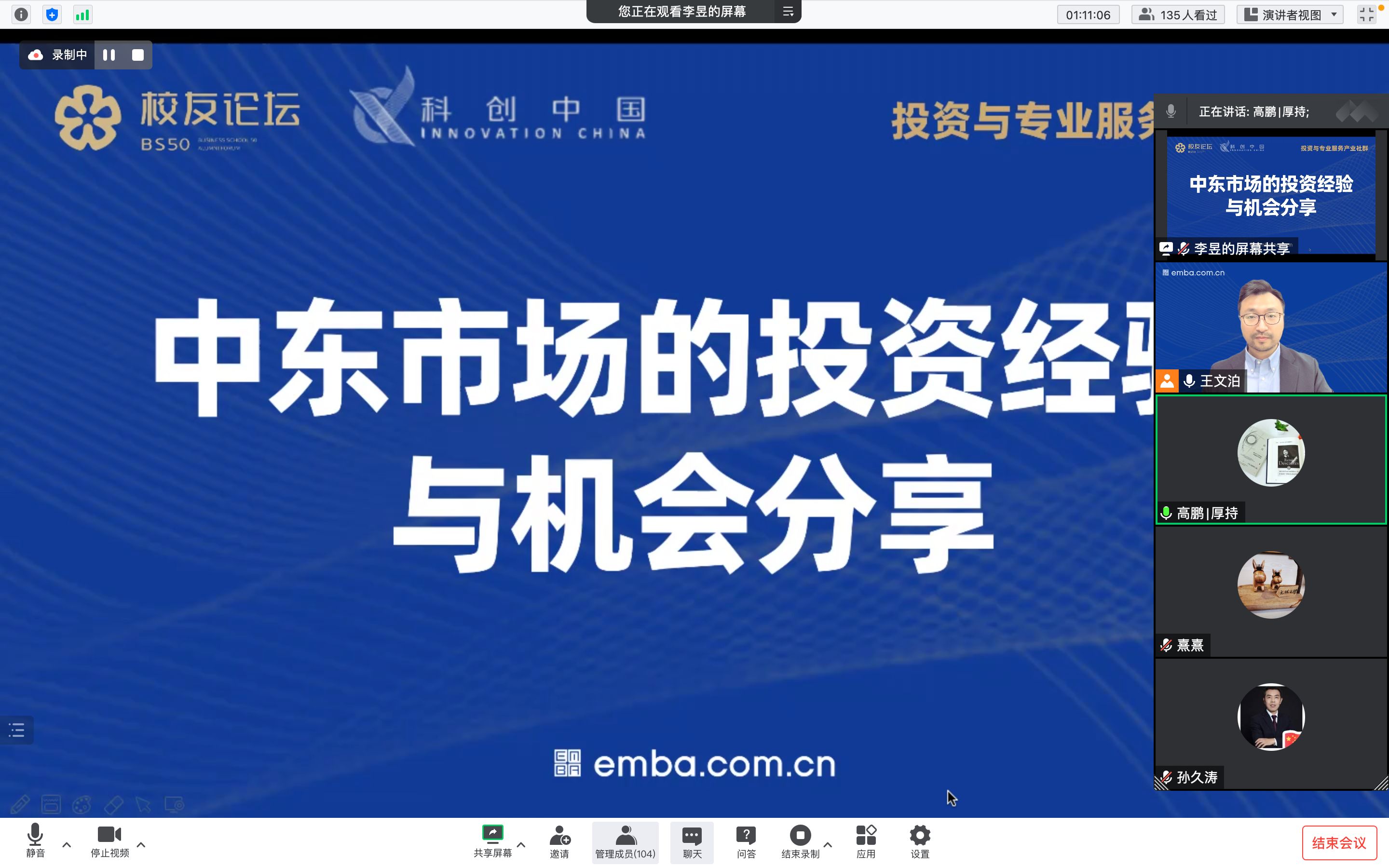 “科创中国”融媒体协同创新专业科技服务团组织商学院校友参加“投资与专业服务”论坛