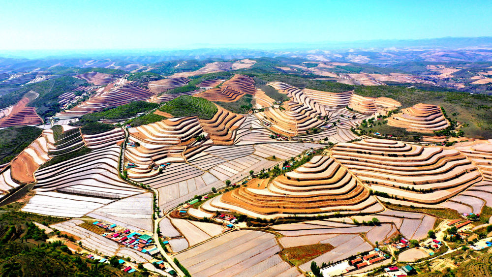 山变绿,民变富。金鸡坪梯田公园所在的固原市彭阳县阳洼流域一度“山是和尚头、沟里没水流”。在固土养水的基础上,彭阳县将生态建设与全域旅游结合,规划观景节点,发展林下经济,“中国最美旱作梯田”的大地景观成为旅游热门打卡地。