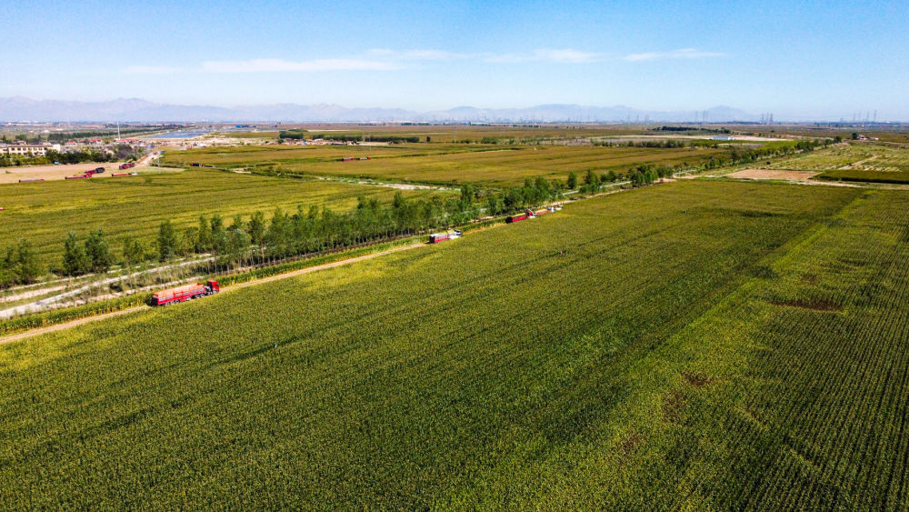 位于石嘴山市平罗县的宁夏农垦集团前进农场收割青贮玉米。(受访者供图)