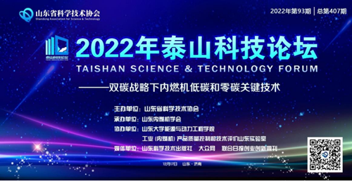12月17日,由山东省科学技术协会主办,山东内燃机学会承办,山东大学能源与动力工程学院、工业(内燃机)产品质量控制和技术评价山东实验室协办的第407期泰山科技论坛——双碳战略下内燃机低碳和零碳关键技术在线上举办。