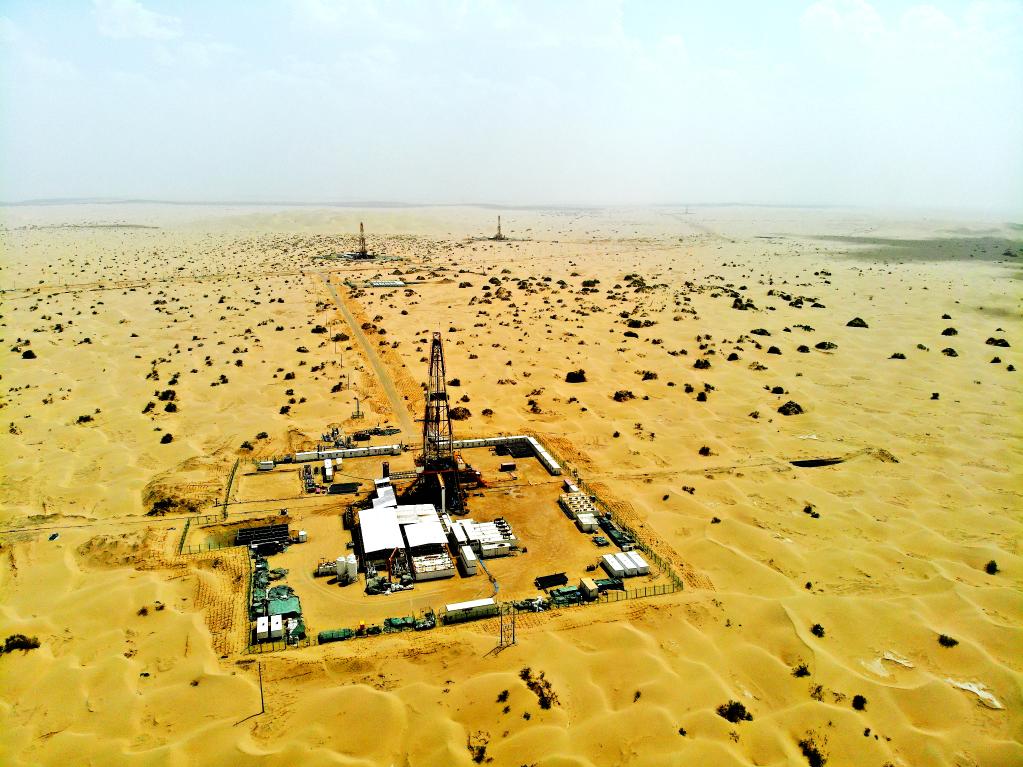 大漠深处的富满油田井架林立。图片来源:中国石油塔里木油田公司
