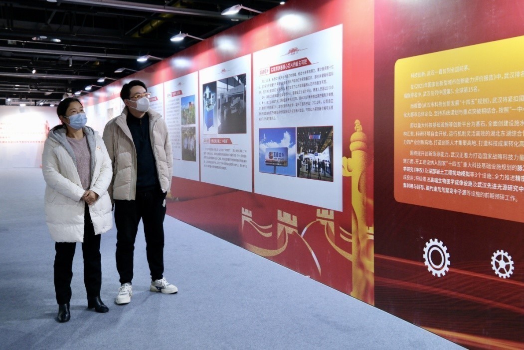 据悉,“奋进英雄大武汉——江城加快建设具有全国影响力的科技创新中心”专题临展是由武汉市科协主办,武汉科技馆承办的专题展览,分为前言、数说武汉科技十年、武汉力量(大国重器、创新发展、创新高地)、强国有我(院士风采、雏凤清声)等板块,意在全面展示党的十八大以来,武汉在“科技创新”和“科学普及”方面的成就。